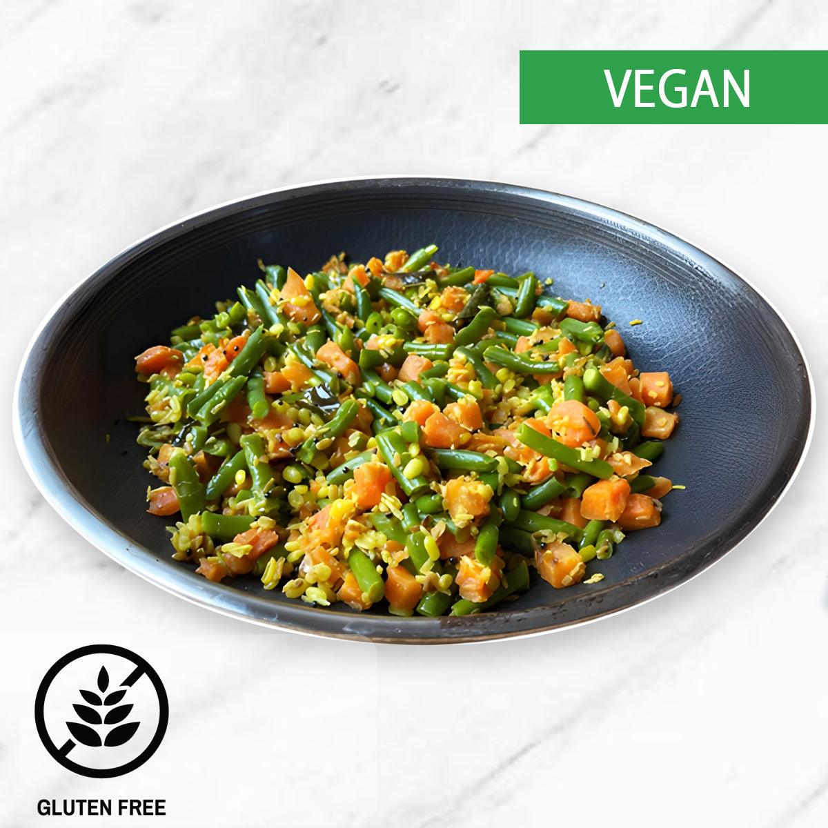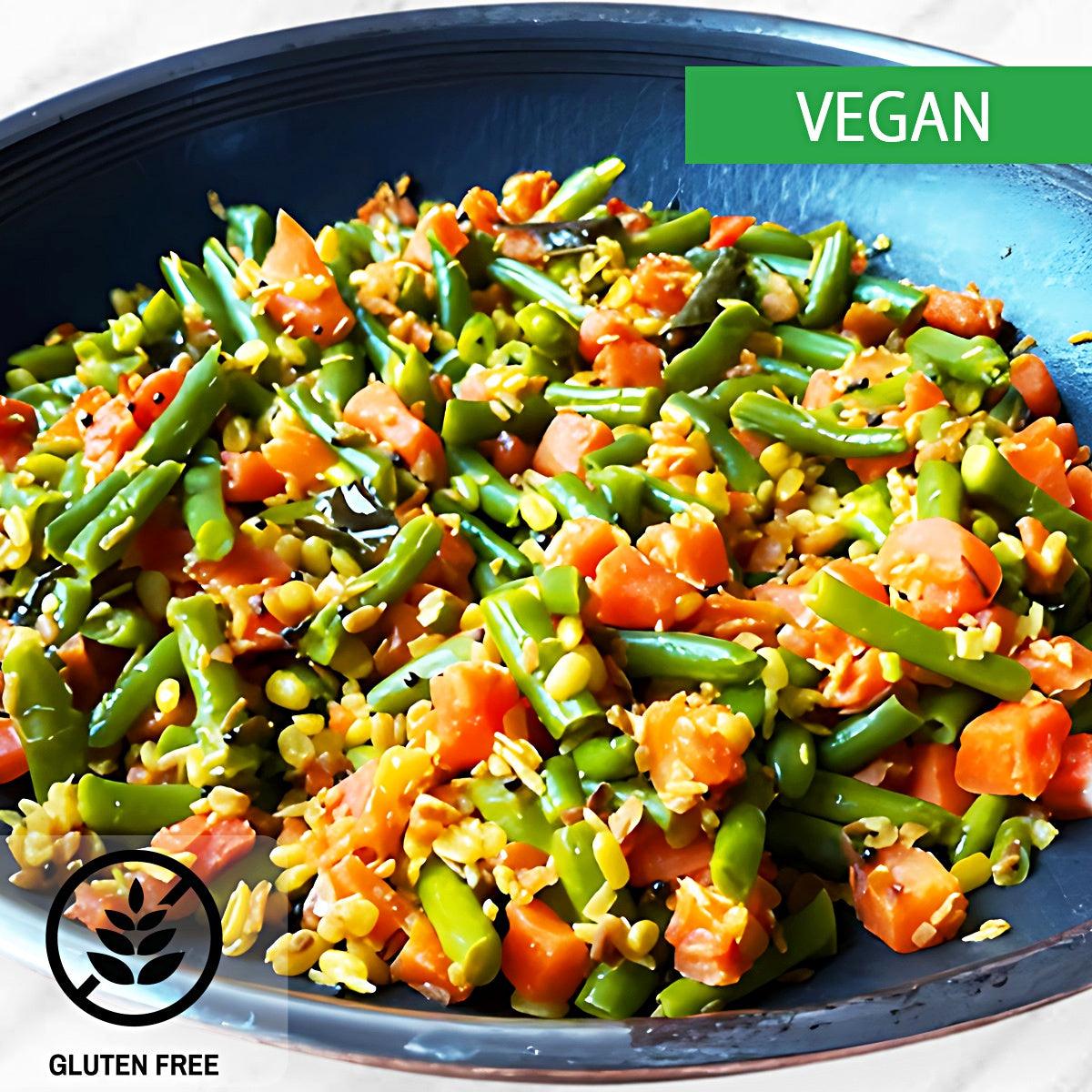 Water, Carrots (28.8%), Green Beans (28.8%), Coconut (1.9%), Coconut Oil, Mung Beans, Mustard Seeds (Mustard), Salt, Urad Dahl, Chickpeas, Green Chilli, Curry Leaves, Red Chilli, Turmeric.