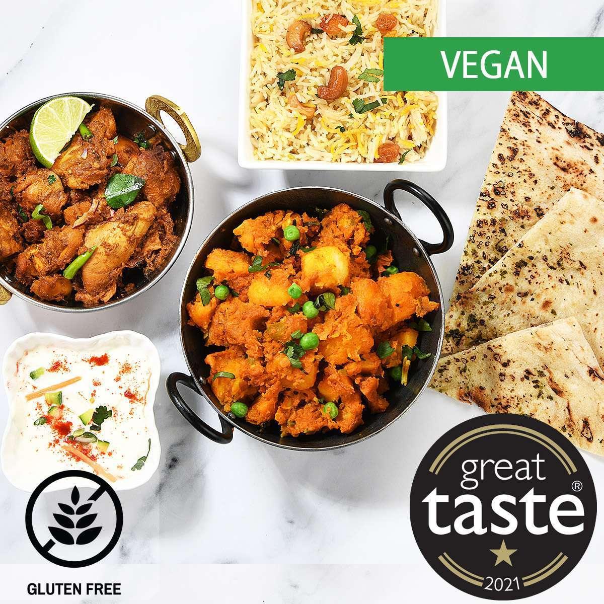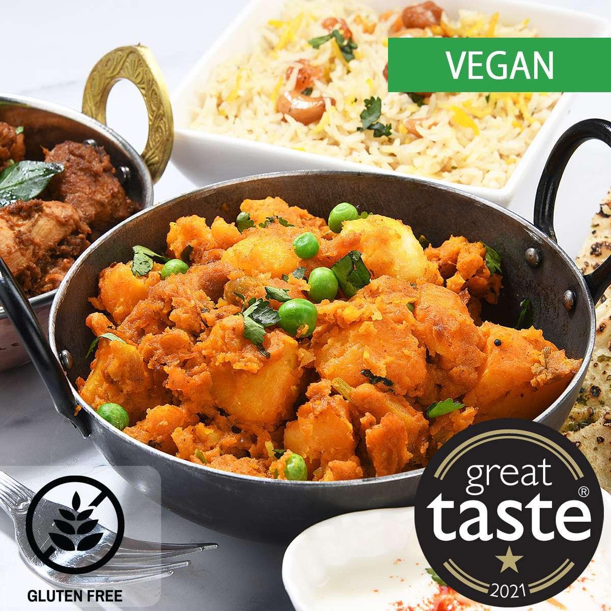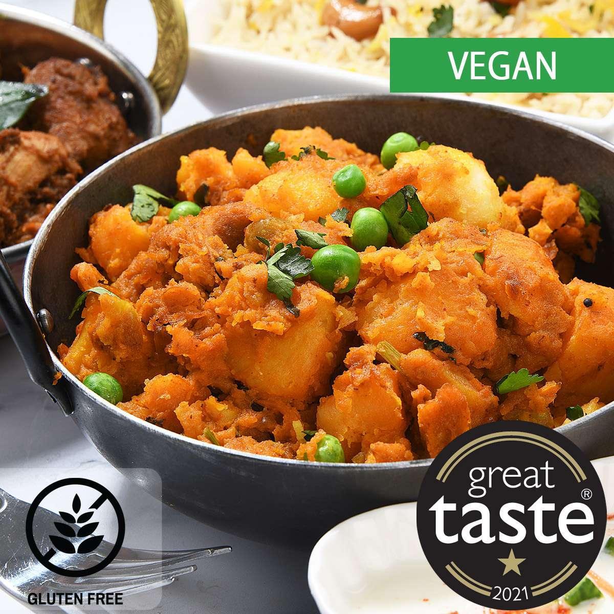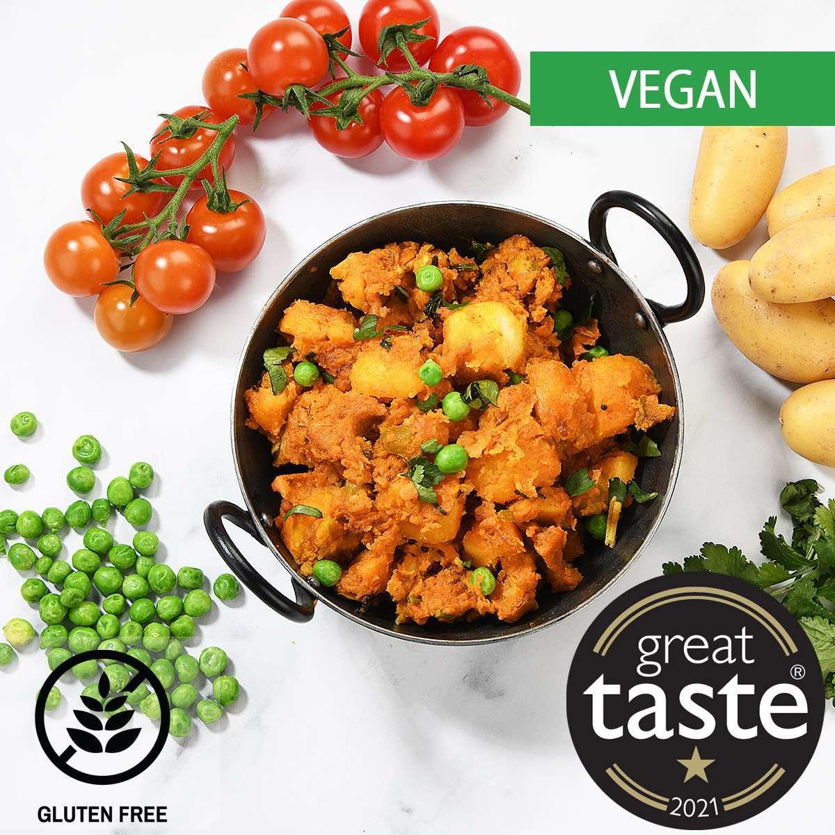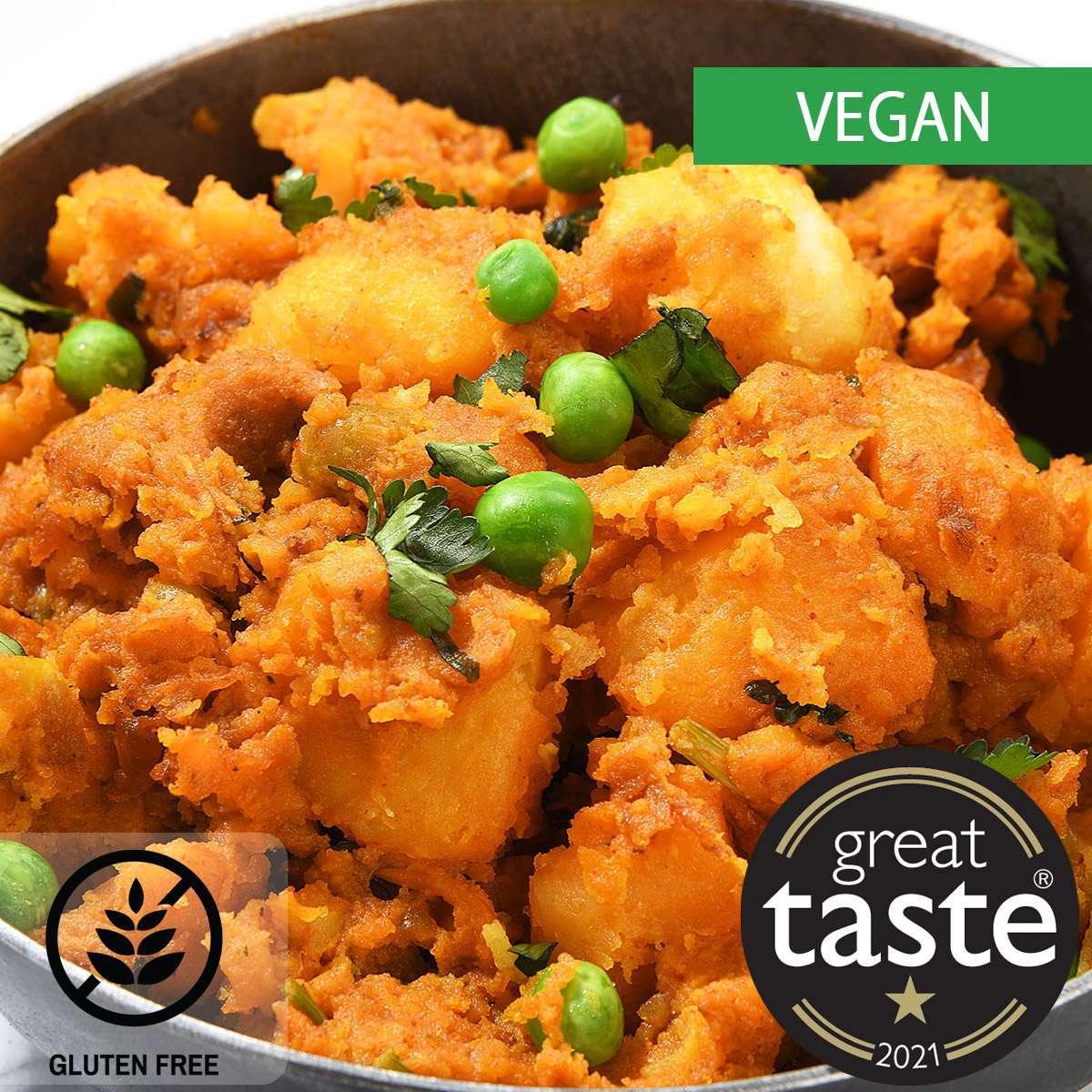 Potato (51%), Onion (26%), Water, Peas, Peanut Oil (Peanuts), Chick Pea Flour, Tomatoes, Coriander Leaves, Chilli Powder, Curry Leaves, Green Chilli, Salt, Fennel Seeds, Ginger, Garlic, Turmeric, Cumin Seeds, Mustard Seeds (Mustard), Mint, Lemon Juice.