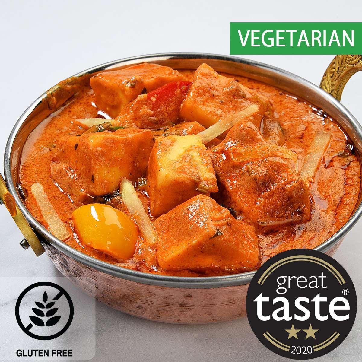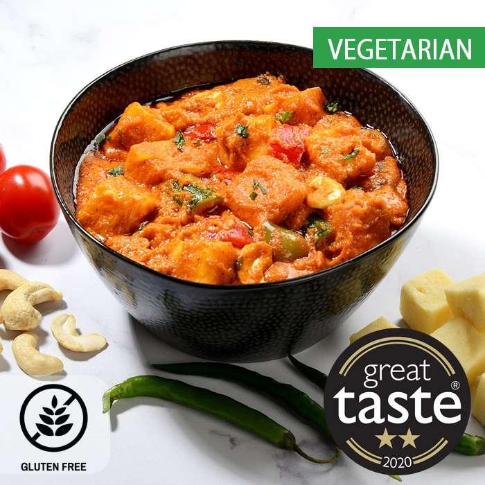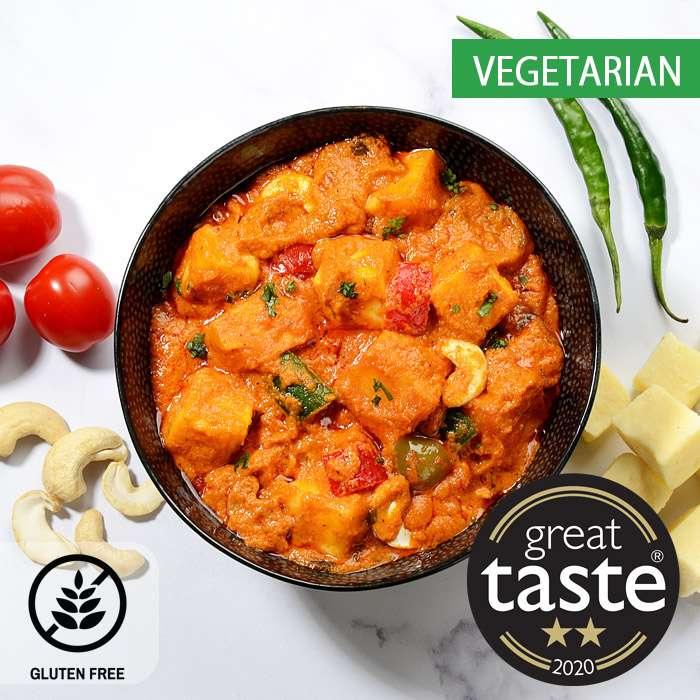 Popular Punjabi delicacy. Cottage cheese, cooked in a silky rich curry with tomatoes, cashews, chillies & organic butter. A party... Read more