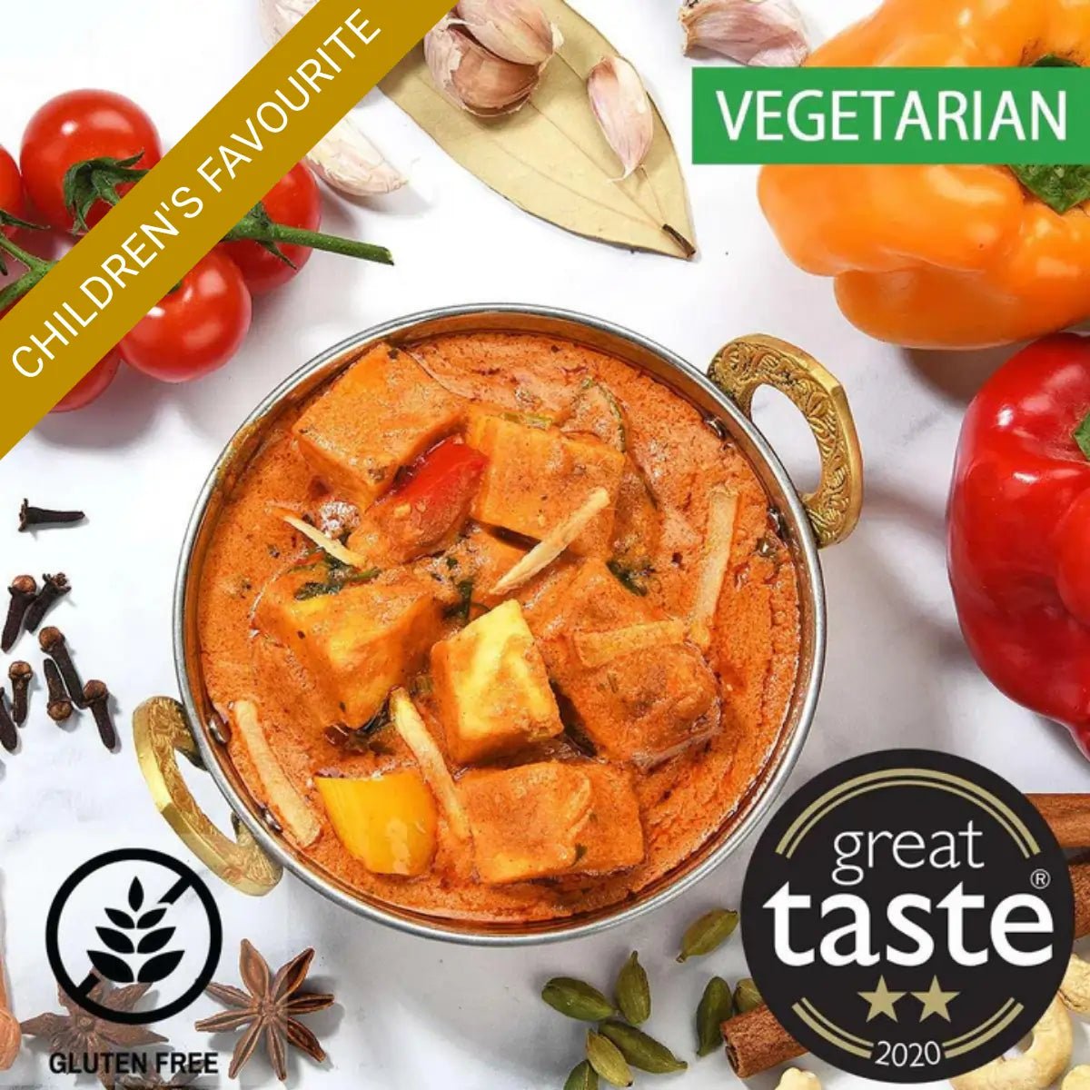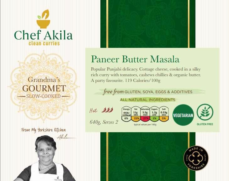 Water, Paneer (Milk) (17%), Tomatoes (16%), Cream (Milk)(2%), Cashew Nuts (Nuts) (2%), Butter (Milk) (1%), Red Peppers, Green Peppers, Coriander Leaves, Garlic, Red Chilli (0.2%), Ginger, Garam Masala, Sea Salt, Ground Coriander, Green Chilli, Honey, Ground Cumin, Chilli Powder, Fenugreek Leaves, Bay Leaf, Cinnamon, Cloves, Cardamom Seeds.