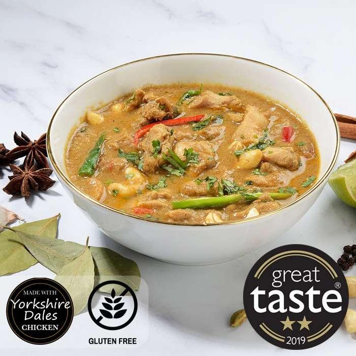 Boneless Chicken (44%), Water, Onion, Tomatoes, Cashew Nuts (Nuts) (4%), Coriander Leaves, Peanut Oil (Peanuts), Ginger, Garlic, Mint, Black Pepper (0.35%), Green Chilli, Chilli Powder, Turmeric, Ground Cumin, Salt, Cloves, Cinnamon, Garam Masala.