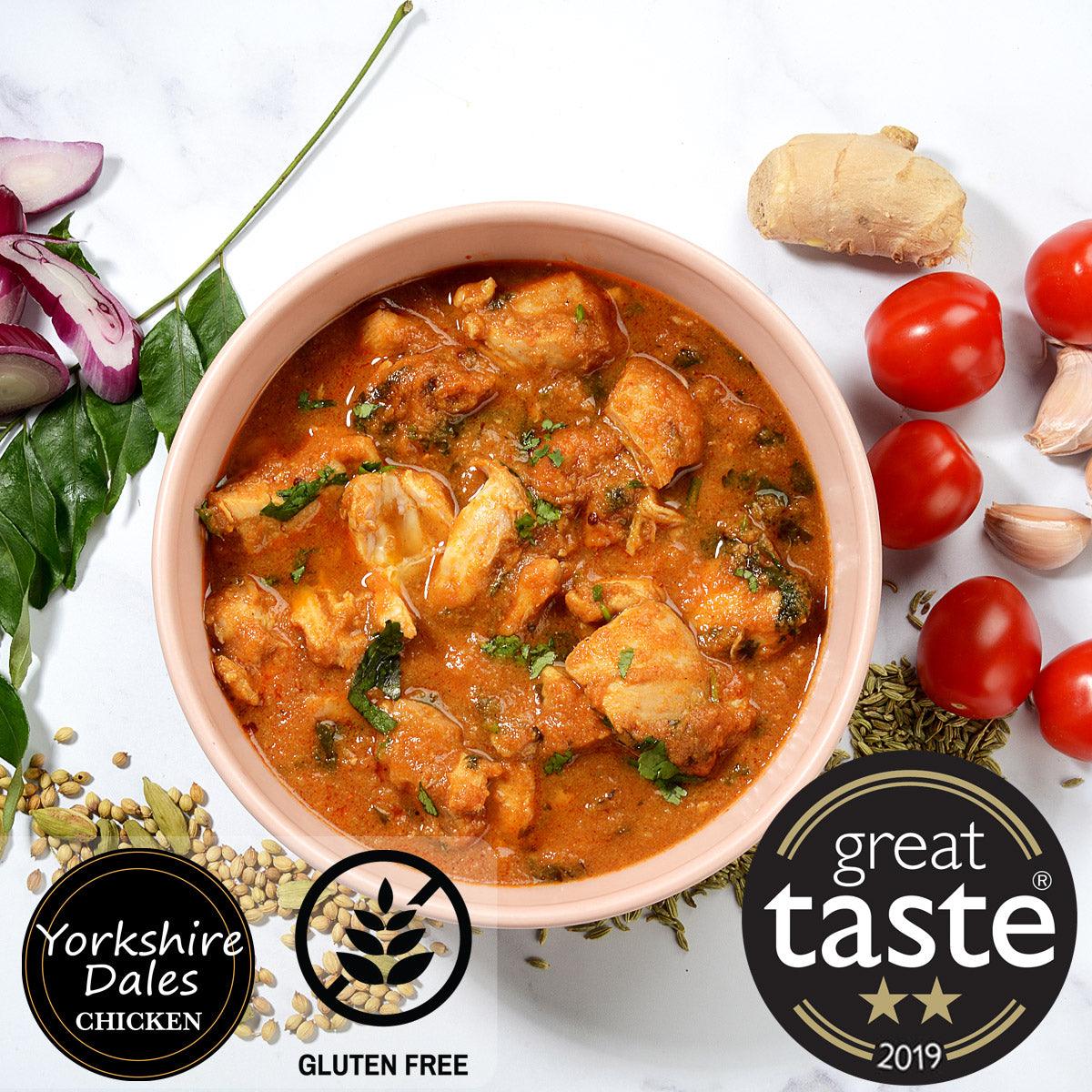 Our healthier twist on a family recipe from rural India. Chicken pieces cooked in a rustic onion and tomato-based gravy.... Read more